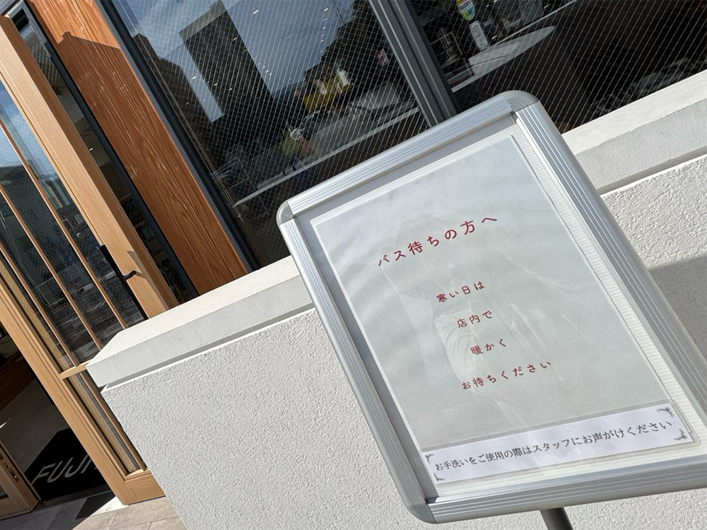 バス停の前に、地域の人を想うからこそ、こういうところも大ファンの浅野です。